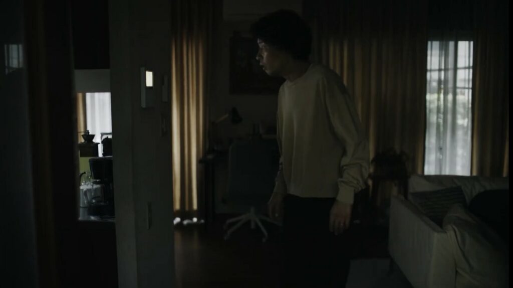 Dans Cloud, dernier des trois projets à être réalisé par Kurosawa, sorti le 27 septembre 2024 au Japon, Yoshii, l’auto-entrepreneur, établit son profit sur le drop-shipping2, et le logiciel de son entreprise correspond précisément à cet outil virtuel de production de l’aliénation. La surface de son aliénation se décline dans son regard en des multiplicités d’icônes et de fétiches qui clignotent à ses yeux ; dans ce cas la chaîne économique concrète impliquée par son entreprise va faire de son inflation un sursis, jusqu’à briser son couple. Dans Chime et La Voie du serpent, les outils de la production sont différents puisqu’ils sont des instruments de production à l’intérieur de la cellule conjugale.